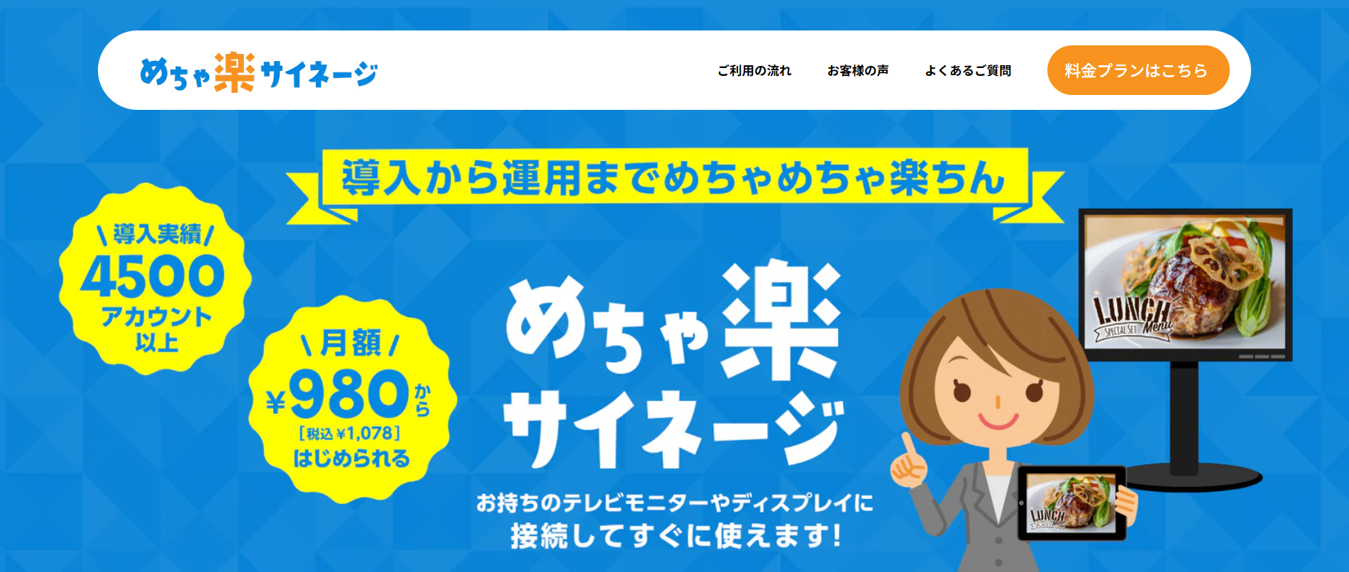 月額:クラウド配信 1台980円、1店舗10台まで2,000円