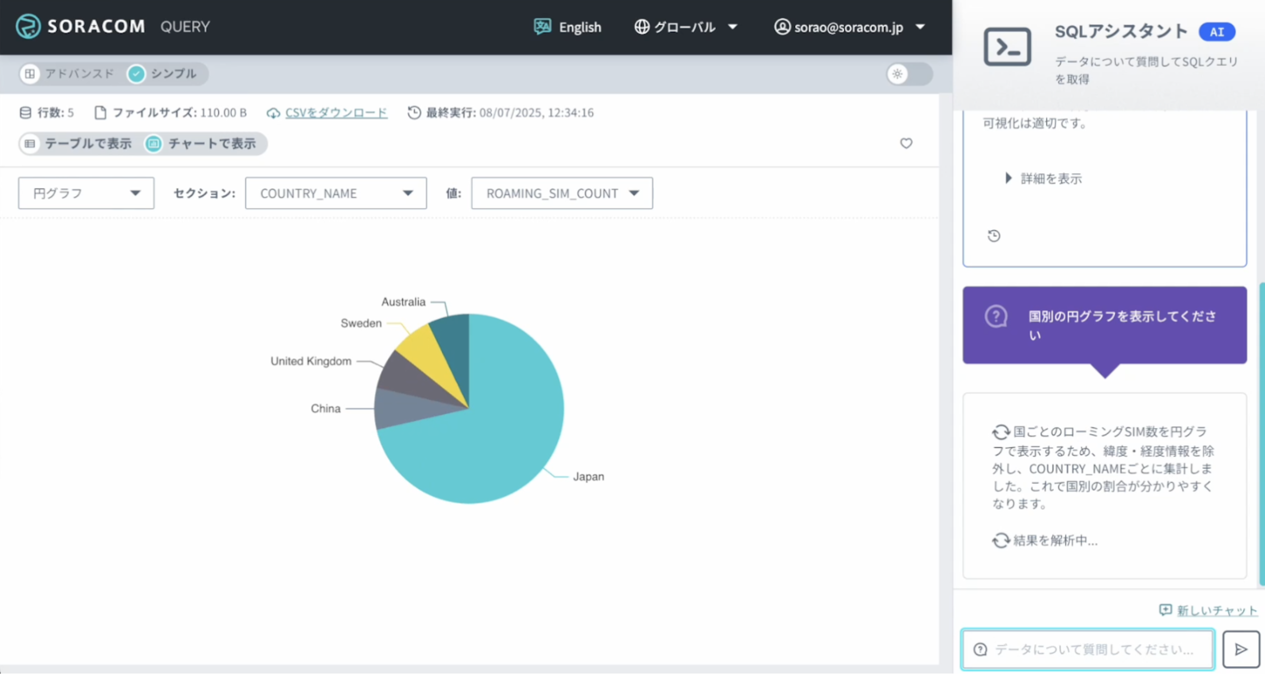IoTを利用する上で日々蓄積されたデータですが、その分析や活用のハードルが高く、業務への十分な活用ができていないケースもありました。「SORACOM Query」では、生成AIにより自然言語から SQL への変換を実現した「Query アシスタント AI」機能によって、専門知識を必要とせずにデータへとアクセスが出来、こうしたIoTでのデータ分析へのハードルが緩和されます。