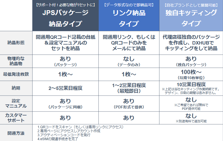 JP SMART SIM (Prepaid eSIM) の卸販売では3種の納品形態で提供しております。