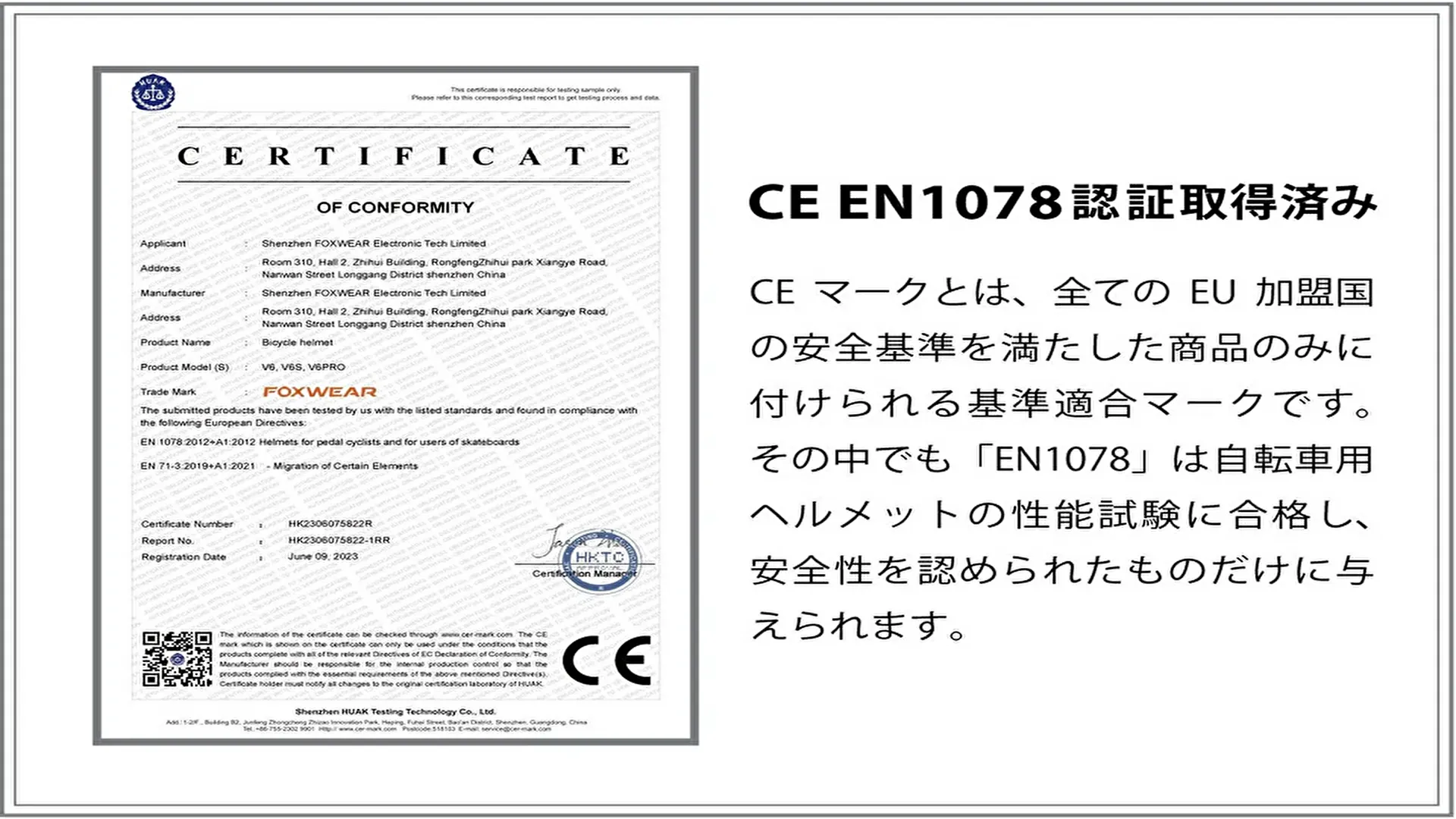 ■高い安全基準をクリア「CE EN1078認証」取得済み