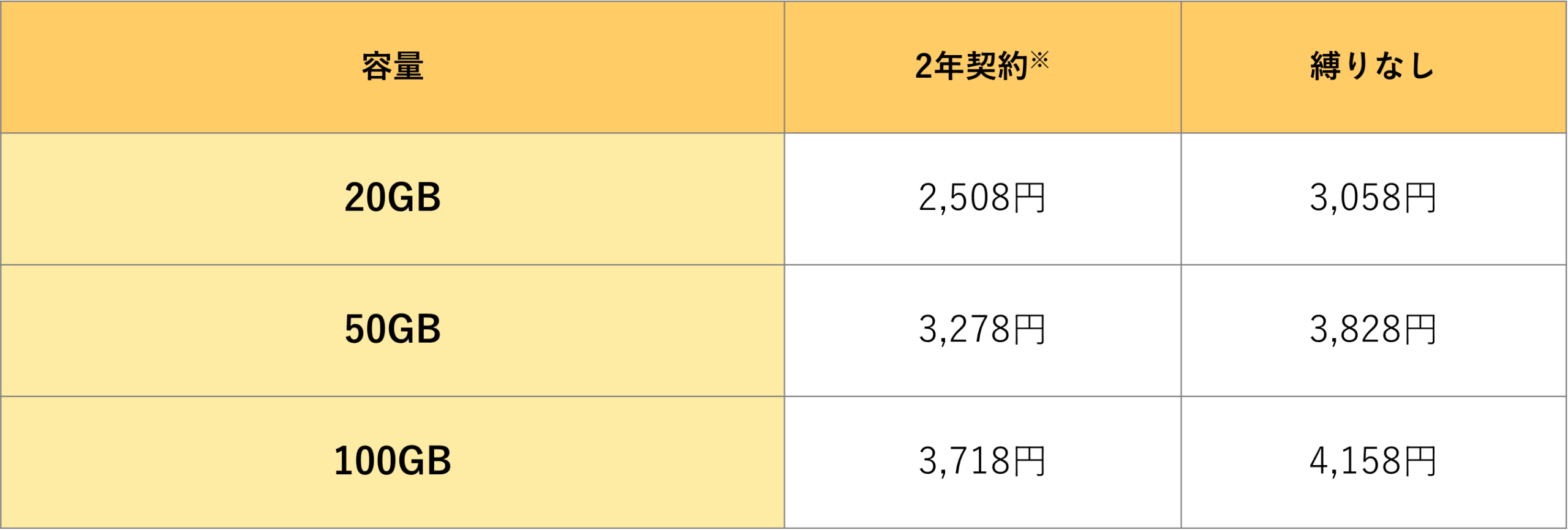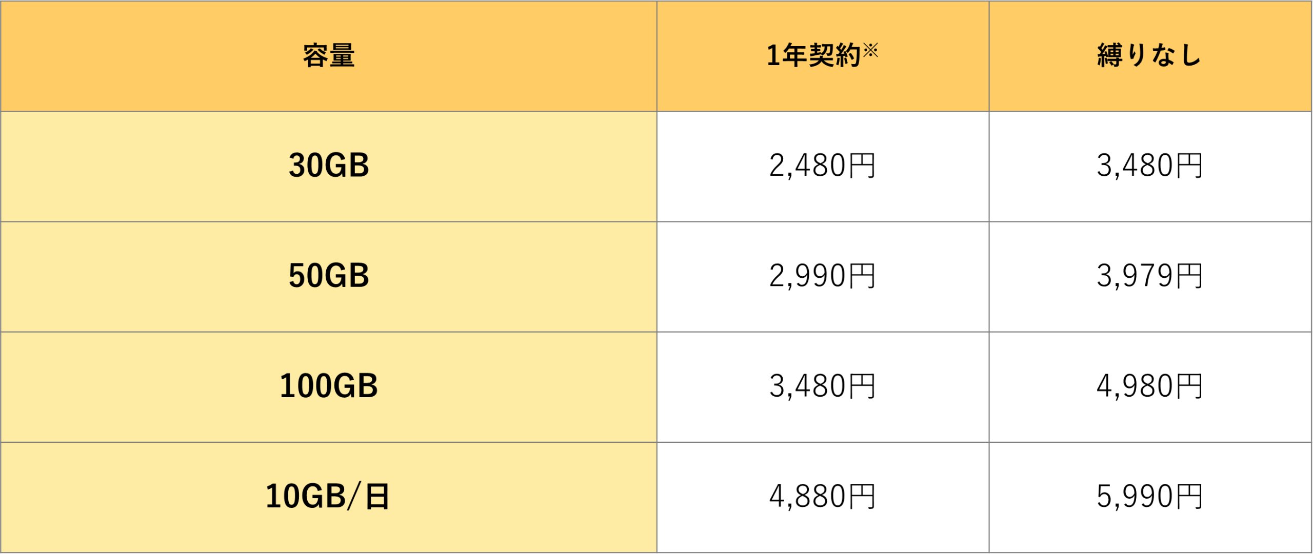 ※2年契約の場合、2年以内の解約で解約金(1か月分の月額料金)が発生します。