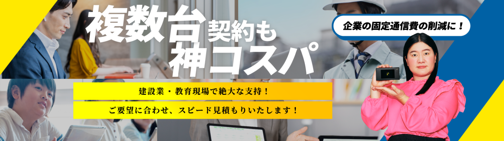一部の法人向けポケット型Wi-Fiサービスは、複数回線の契約で月額費用を割引する、初回契約で初期費用を無料にする、などといった割引・キャンペーンを行っている場合があります。