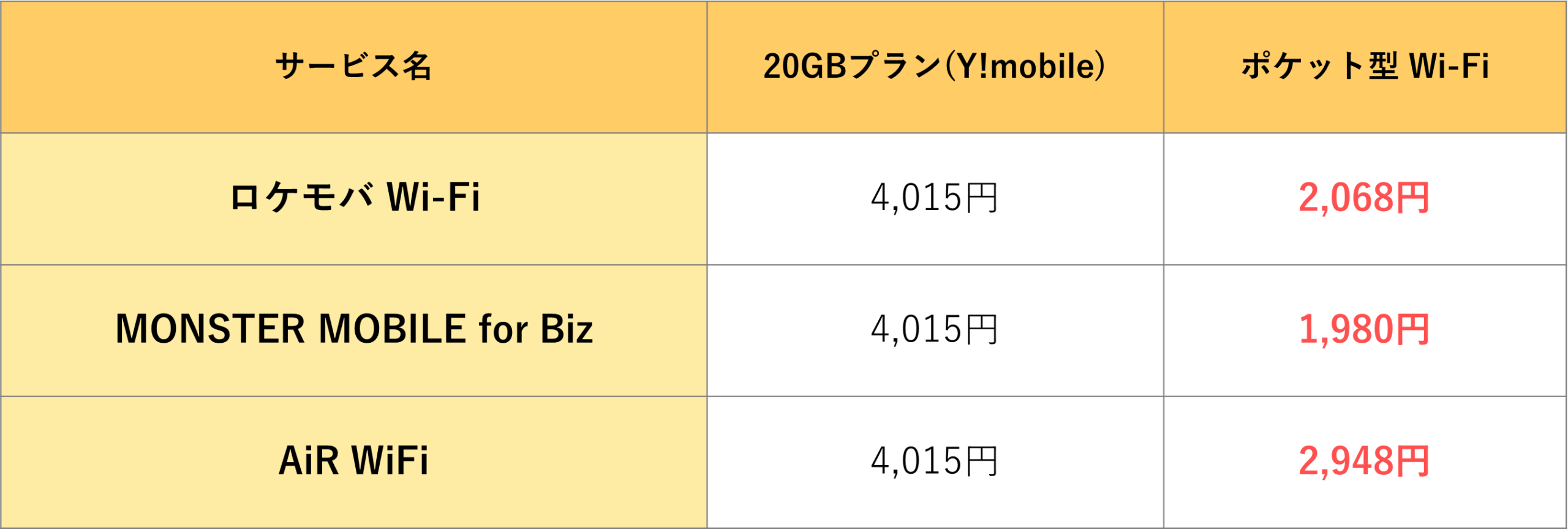 その他の法人向けポケット型Wi-Fiサービス