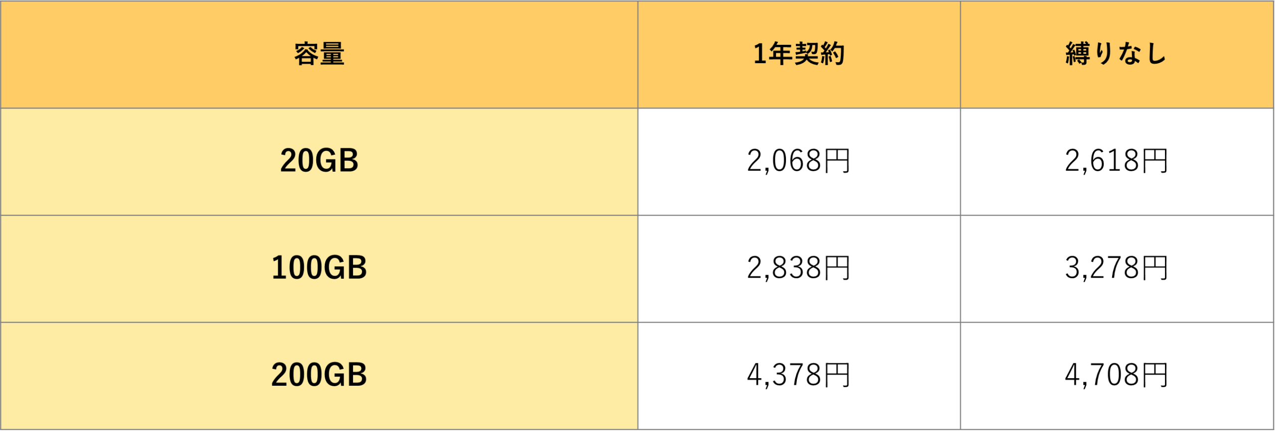 ※双方ともプラン変更が可能(1年契約→縛りなしの場合、解約金発生)