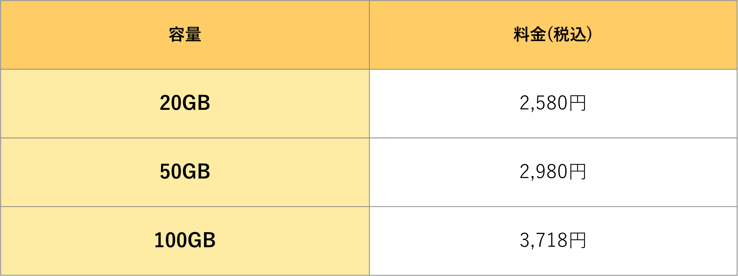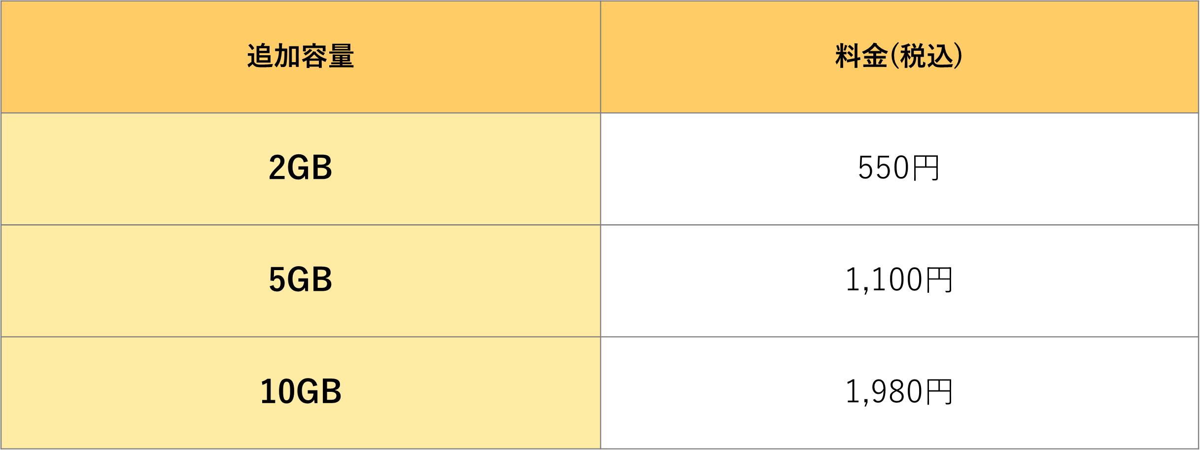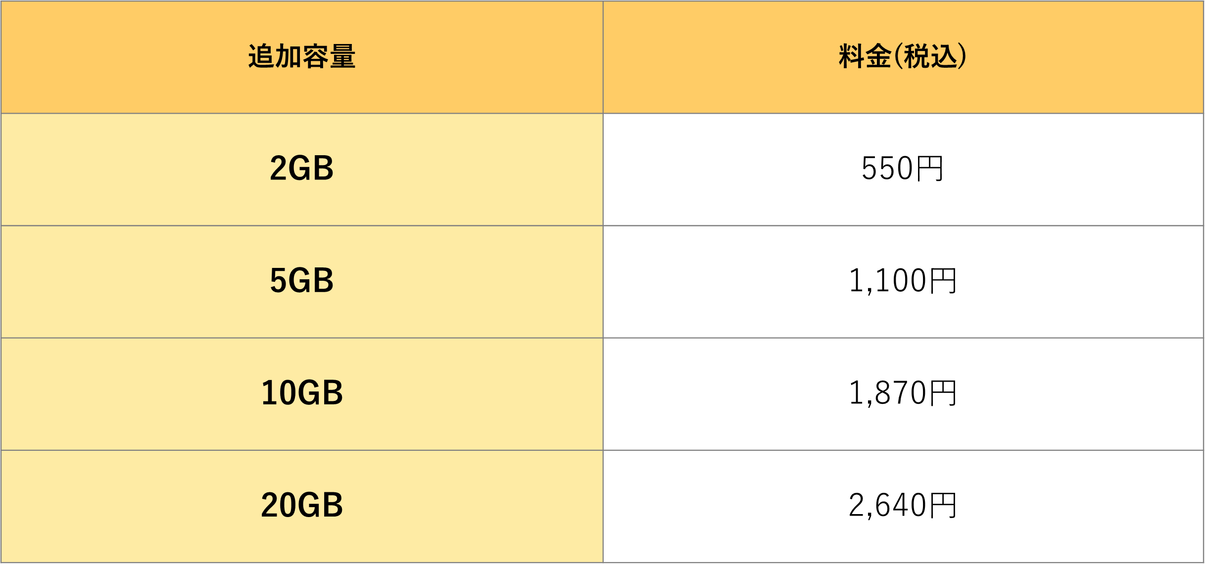 また、容量追加オプションの内容は以下の通りとなっています。