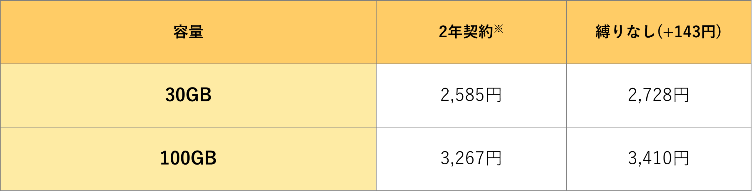 ※契約期間中に解約した場合、2,585円の契約解除料が発生します。