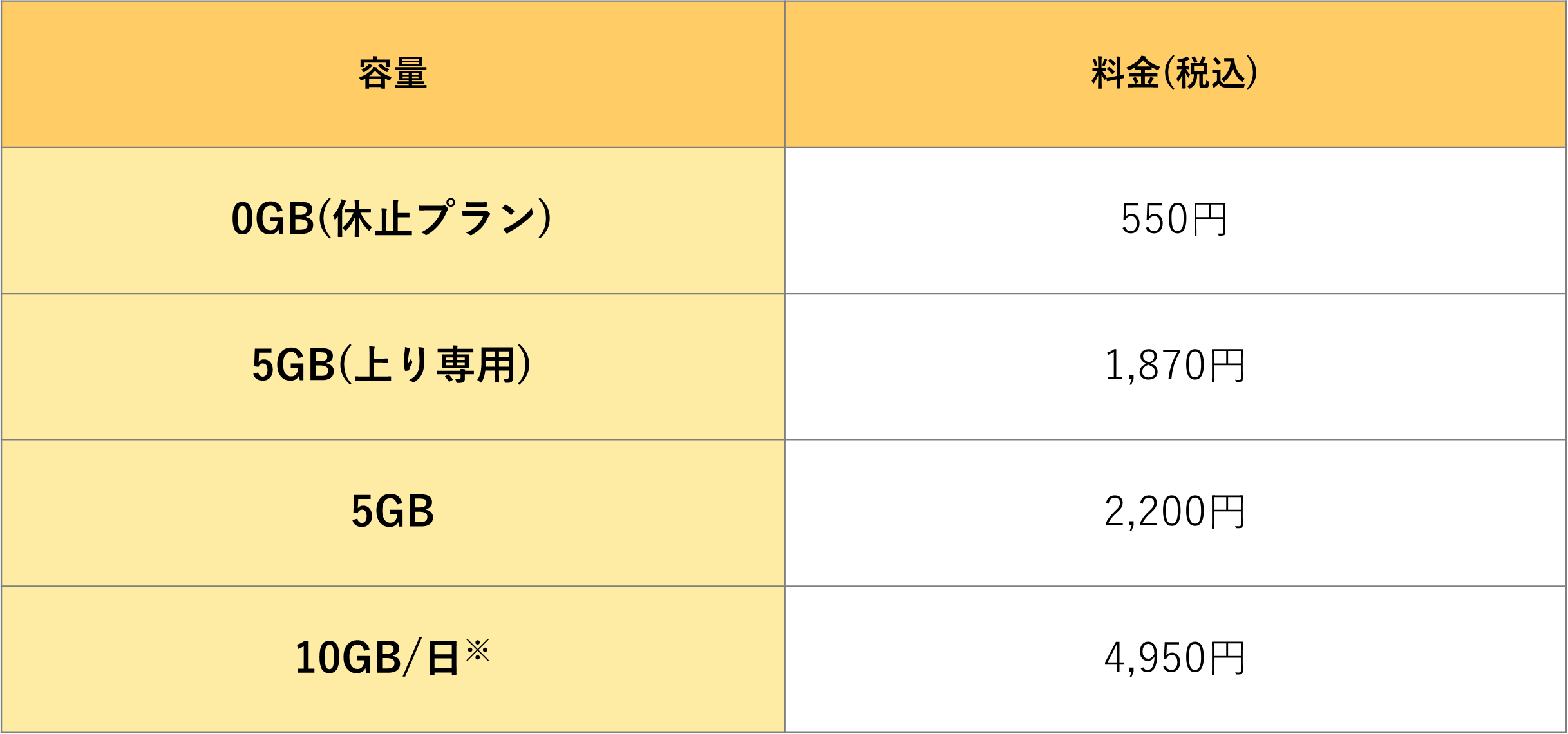 ※10GB/日プランは、1日の使用料が5GBを超えると段階的に速度制限がかかります。(翌日以降制限解除)