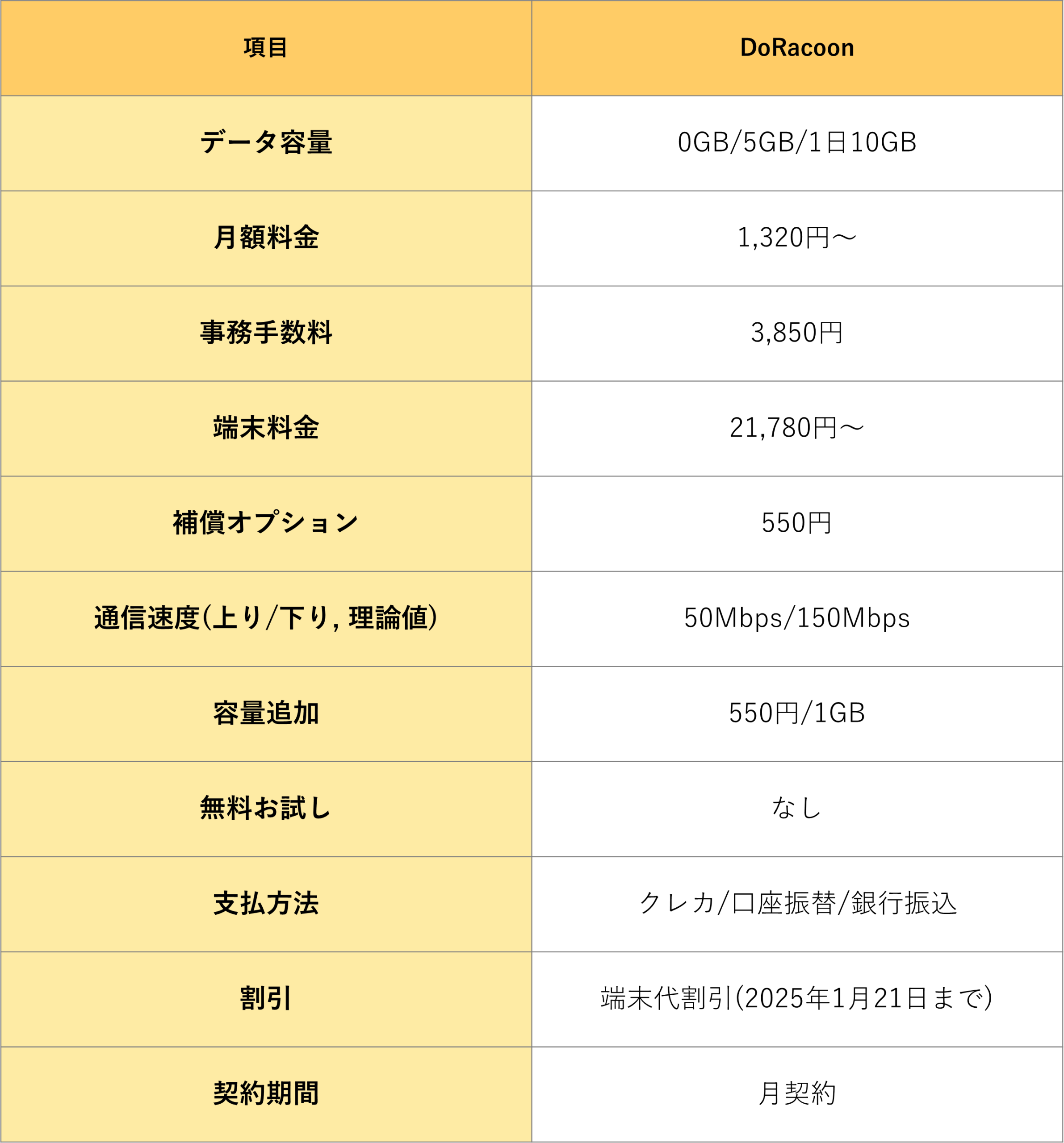 DoRacoonでは、複数のポケット型Wi-Fi端末を提供しており、それぞれ価格・性能が異なります。端末料金の割引に関しても、端末によって割引額が異なるので、申込の際は注意が必要です。(詳しくはDoRacoon公式サイトを参照)
