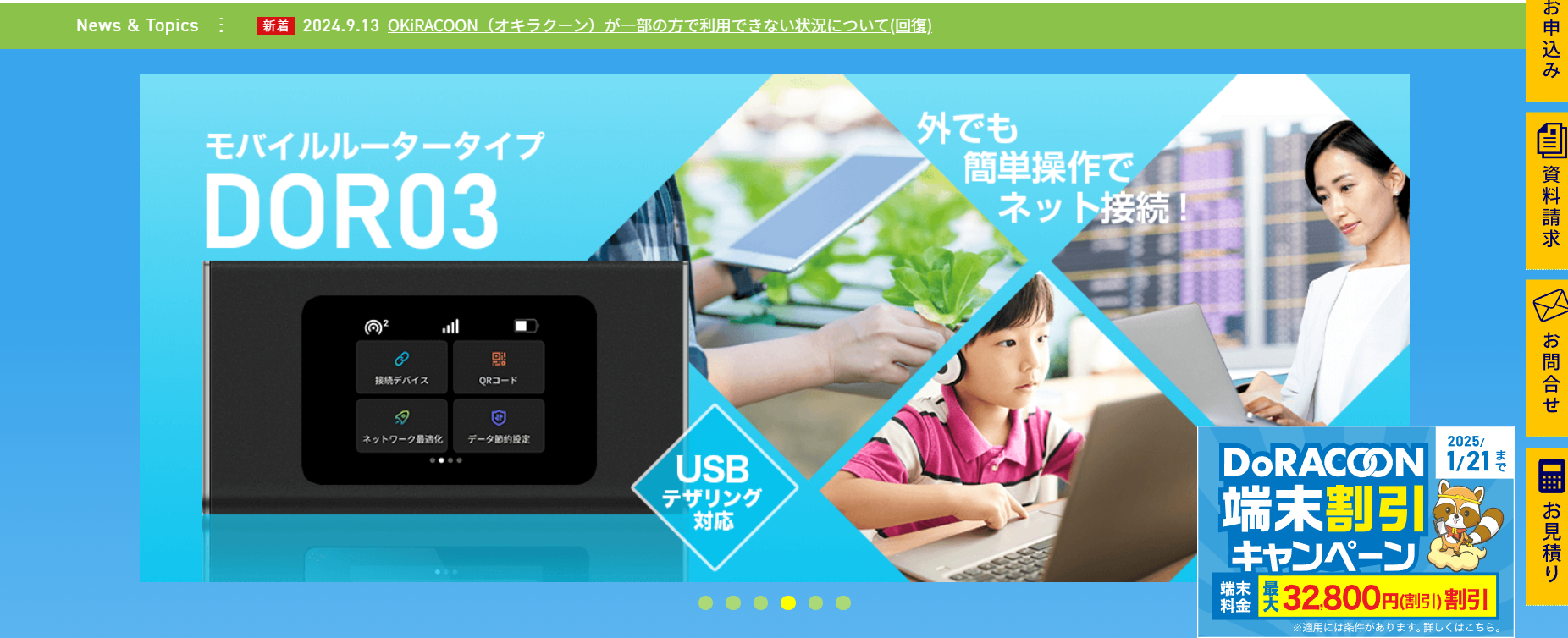特徴:「DoRacoon」は、月額1,320円から利用可能な法人向けポケット型Wi-Fiサービスです。