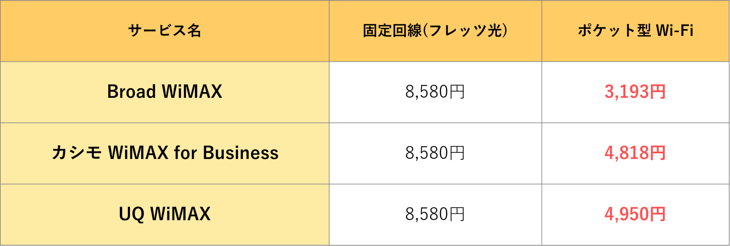また、固定回線と比較した場合にも、ポケット型Wi-Fiの無制限プランは以下のようにお得に利用することができます。