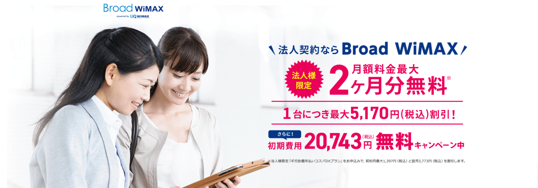 特徴:「Broad WiMAX」は、WiMAX+5G対応の法人向けポケット型Wi-Fiサービスです。