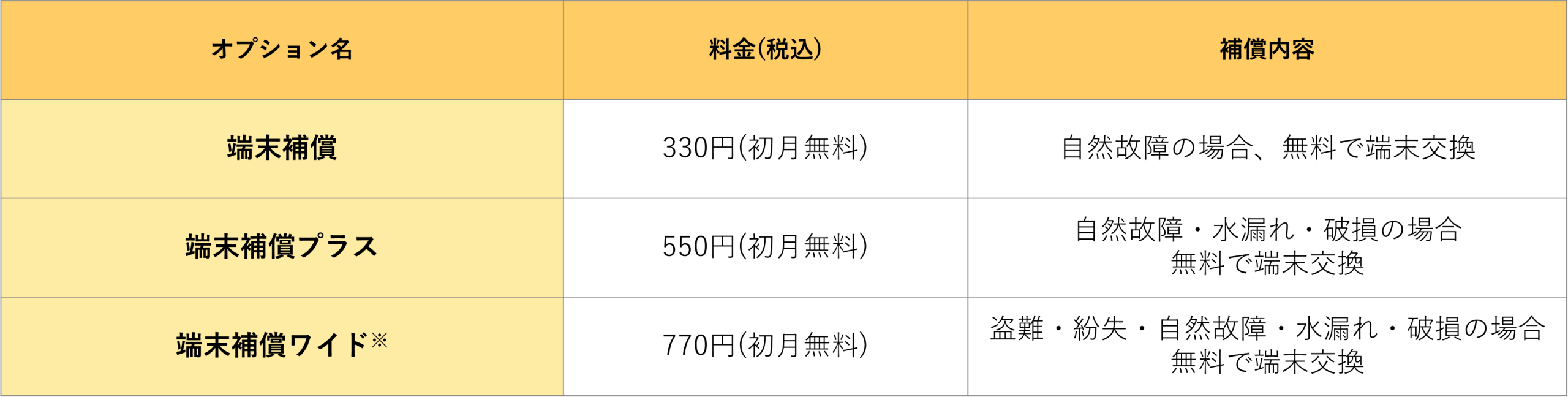 ※端末補償ワイドの「盗難・紛失」は税込5,500円の有償補償です。