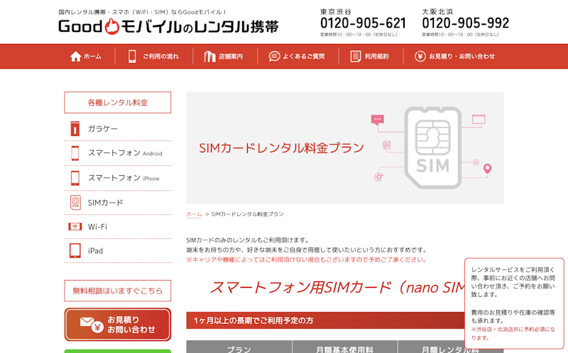Goodモバイルでは、スマートフォン用とガラケー用のSIMカードを提供しています。スマートフォン用SIMカードのプランには、長期と短期の利用者向けに異なるオプションがあります。