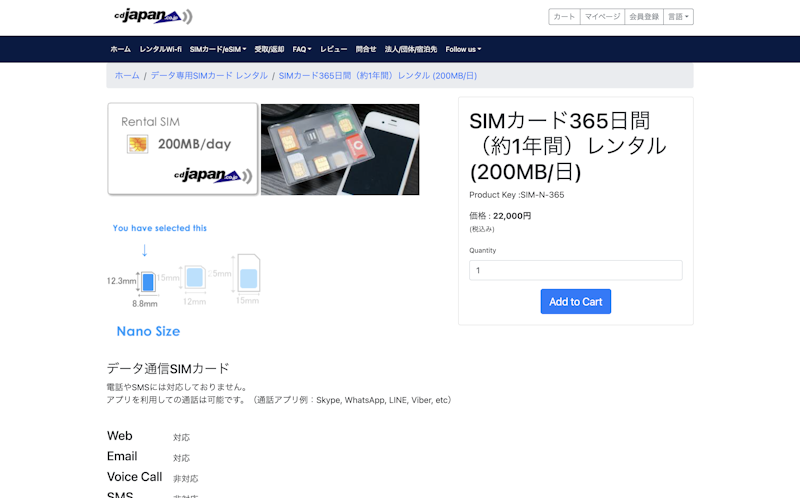 DCJapan「SIMカード365日間(約1年間)レンタル」