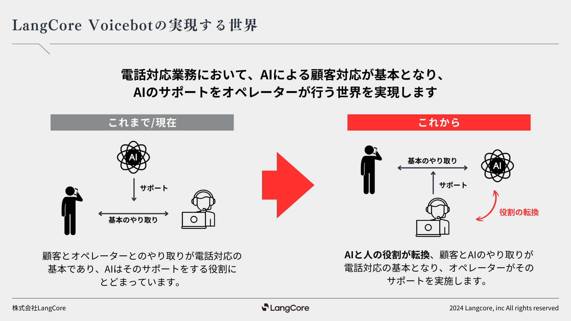 (参考)生成AIでコンタクトセンター業務を完全自動化するAI電話対応システム「LangCore ボイスボット」の正式提供を開始 無料ホワイトペーパー公開中]