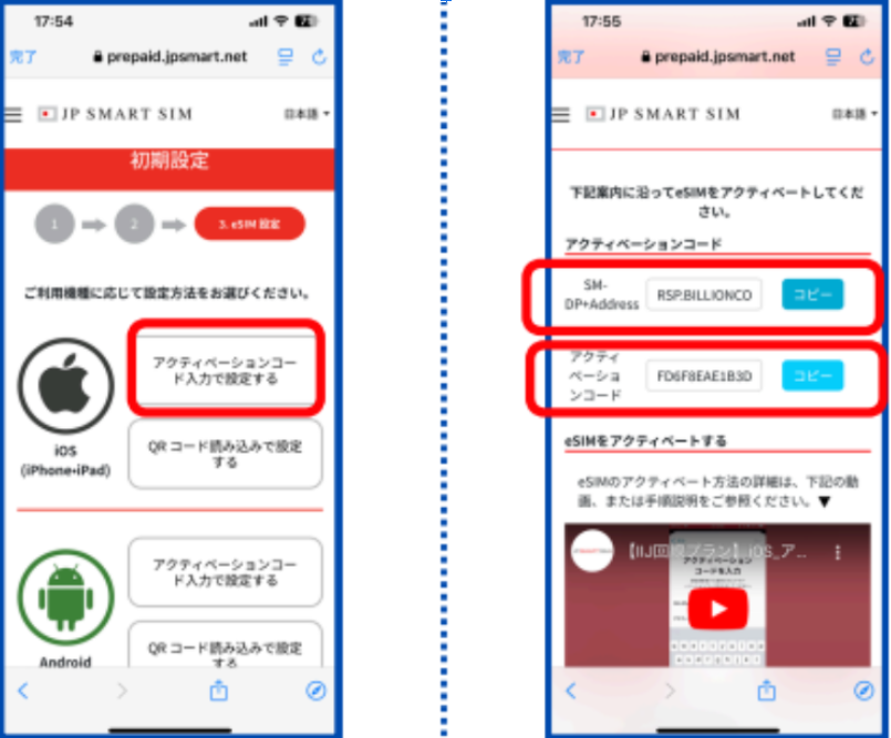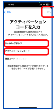 5.iPhoneの設定→モバイル通信→eSIMを追加→QRコードを使用→詳細情報を手動で入力~先ほどコピーしたコードを入力する。