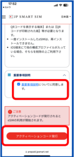 3.重要説明事項に同意してアクティベーションコード発行
