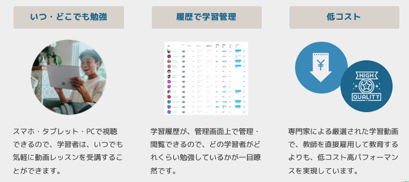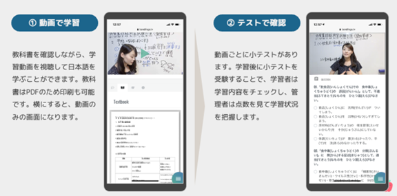 「BondLingo」は、オンライン動画とテキストによって日本語を学習できるサービスで、日本語能力試験JLPTのN5からN1まで対応しています。学習の進捗はテストにより確認でき、従業員評価や表彰の参考としてご利用いただけます。雇用主、支援機関向けの企業向けに「BondLingo」単体での提供も行っています。