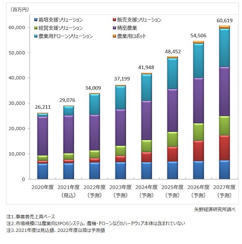 (参考)2021年版 スマート農業の現状と将来展望 ~省力化・高品質生産を実現する農業IoT・精密農業・農業ロボットの方向性~|株式会社矢野経済研究所