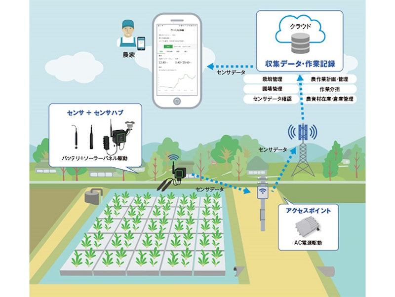 NTTドコモは、IoTを活用した新たな営農支援プラットフォームとして、圃場や作物の栽培状況などを手軽に管理することができ、土耕だけでなく水耕栽培や水産にも対応した「畑アシストTM」の提供をしています。